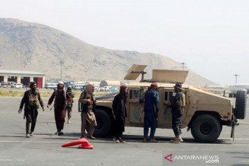 Pasukan Taliban berjaga tepat sehari setelah penarikan pasukan AS dari Bandara Internasional Hamid Karzai di Kabul, Afghanistan (31/8/2021). ANTARA FOTO/REUTERS/Stringer/aww.