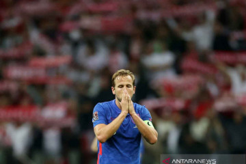 Pesepakbola Inggris Harry Kane saat menghadapi Polandia pada kualifikasi Piala Dunia 2022 di PGE Narodowy, Warsawa, Polandia, Kamis (9/9/2021). Inggris ditahan imbang Polandia 1-1. ANTARA FOTO/Action Images via Reuters/Carl Recine/rwa.