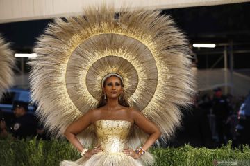 Artis dan model Iman berpose untuk para fotografer setibanya di acara acara Met Gala 2021, di Metropolitan Museum of Art in New York City, New York, Amerika Serikat, Senin (13/9/2021). Perhelatan offline terakhir digelar pada Senin pertama Mei 2019 lalu, setelah itu, acara ini tak lagi digelar karena pandemi COVID-19. ANTARA FOTO/Reuters-Mario Anzuoni/hp.