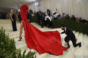 Super model Karlie Kloss tiba di acara acara Met Gala 2021, di Metropolitan Museum of Art in New York City, New York, Amerika Serikat, Senin (13/9/2021). Perhelatan offline terakhir digelar pada Senin pertama Mei 2019 lalu, setelah itu, acara ini tak lagi digelar karena pandemi COVID-19. ANTARA FOTO/Reuters-Mario Anzuoni/hp.