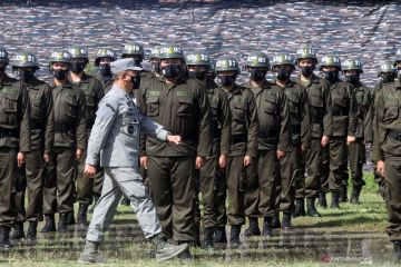 Personel Bakamla mengikuti upacara pembukaan Coast Guard Basic Training (CGBT) personel Bakamla Angkatan VIII di lapangan Samudera Mako Pusdiklatsarmil Juanda, Sidoarjo, Jawa Timur, Rabu (15/9/2021). Kegiatan yang diikuti 119 personel Bakamla yang terdiri 93 orang pria dan 26 orang wanita tersebut dalam rangka pengembangan profesionalisme dan pembentukan karakter menjadi sosok paramiliter. ANTARA FOTO/Umarul Faruq/hp.
