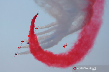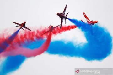 TIm Red Arrows dari British Royal Air Force beraksi dalam pagelaran Malta International Airshow di Qawra, Malta, Sabtu (25/9/2021). ANTARA FOTO/REUTERS/Darrin Zammit Lupi/foc.
