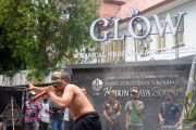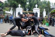 Peserta melakukan teaterikal saat aksi damai Selamatkan Kebun Raya Bogor di pintu utama Kebun Raya Bogor, Jawa Barat, Kamis (7/10/2021). Aksi damai yang digelar Aliansi Komunitas Budaya dan Ormas Jawa Barat tersebut sebagai bentuk penolakan atas bisnis komersial wisata malam Glow dan meminta mengembalikan fungsi Kebun Raya Bogor sebagai tempat konservasi, cagar budaya, edukasi, sejarah, religi dan rekreasi rakyat. ANTARA FOTO/Arif Firmansyah/foc.