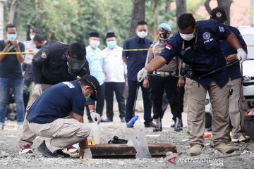 Personil Pusat Laboratorium dan Forensik (Puslabfor) Bareskrim Mabes Polri melakukan pengambilan sample gas beracun dan air dari dalam gorong-gorong yang menewaskan lima orang di Cipondoh, Tangerang, Banten, Jumat (8/10/2021). Pengambilan sample barang bukti tersebut bertujuan untuk memastikan jenis kandungan racun apa yang ada di dalam gorong-gorong tersebut yang menewaskan tiga orang pekerja jaringan kabel Telkom dan dua orang warga yang menolong. ANTARA FOTO/Muhammad Iqbal/rwa.