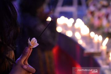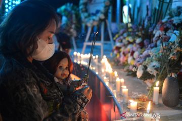 Warga berdoa saat peringatan 19 tahun tragedi bom Bali di Monumen Bom Bali, Badung, Bali, Selasa (12/10/2021). Peringatan tragedi terorisme yang menewaskan 202 orang tersebut dilakukan dengan doa bersama, tabur bunga dan penyalaan lilin oleh warga, keluarga serta kerabat korban. ANTARA FOTO/Fikri Yusuf/pras.