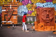 Pengunjung melintas di pameran Indonesian Contemporary Art & Design (ICAD) 2021 di Grand Kemang, Jakarta, Sabtu (23/10/2021). Pameran yang menghadirkan desain dan seni kontemporer ini berlangsung dari 21 Oktober hingga 28 November 2021 mendatang. ANTARA FOTO/Rivan Awal Lingga/hp.