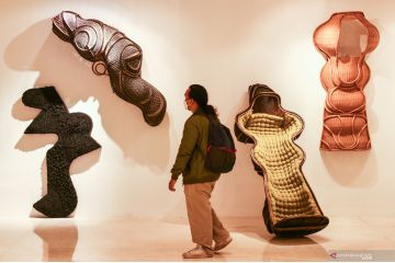 Pengunjung mengunjungi pameran Indonesian Contemporary Art & Design (ICAD) 2021 di Grand Kemang, Jakarta, Sabtu (23/10/2021). Pameran yang menghadirkan desain dan seni kontemporer ini berlangsung dari 21 Oktober hingga 28 November 2021 mendatang. ANTARA FOTO/Rivan Awal Lingga/hp.