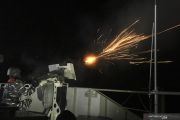 Prajurit TNI AL mengikuti latihan AAROFEX (Anti Air Rapid Open Fire Exercise) dengan metode quickdraw atau penembakan secara serentak di perairan Kepulauan Riau, Minggu (24/10/2021). Latihan tersebut untuk melatih kesigapan prajurit TNI AL dalam menghalau serangan udara. ANTARA FOTO/Fakhri Hermansyah/hp.