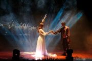 Seniman muda menampilkan pergelaran teater opera musikal berjudul "Pusaka Rimba" dalam pembukaan Festival Seni Bali Jani (FSBJ) III 2021 di Taman Budaya Bali, Denpasar, Bali, Sabtu (23/10/2021). Festival yang digelar pada masa PPKM level 2 yakni mulai 23 Oktober - 6 November 2021 tersebut melibatkan 1.000 seniman dan pekerja seni dengan memadukan antara kegiatan daring dan luring. ANTARA FOTO/Nyoman Hendra Wibowo/hp.