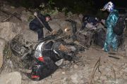 Warga berusaha mengevakuasi korban longsor yang selamat di kawasan tikungan PDAM Tirtanadi, Sibolangit,ÊDeli Serdang,ÊSumatera Utara, Sabtu (23/10/2021) malam. Longsor yang terjadi sekitar pukul 19.30 WIB tersebut menimpa dua mobil dan mengakibatkan tiga orang meninggal dunia. ANTARA FOTO/Fransisco Carolio/Lmo/hp.