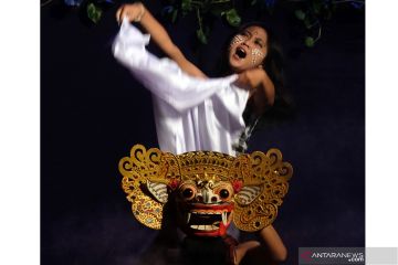 Pelajar yang tergabung dalam Komunitas Sastra Lentera, Kabupaten Klungkung membawakan drama musikal berjudul "Barong" saat tampil pada Festival Seni Bali Jani (FSBJ) III di Gedung Natya Mandala, Institut Seni Indonesia (ISI) Denpasar, Bali, Senin (1/11/2021). Drama musikal tersebut menceritakan tentang manusia yang sangat menghormati alam, lingkungan, hutan dan pohon guna menjaga kelestarian alam dan melawan eksploitasi alam yang mengakibatkan terjadinya bencana. ANTARA FOTO/Nyoman Hendra Wibowo/hp.