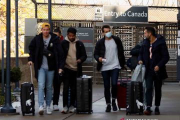 Sejumlah pelaku perjalanan melintas masuk ke wilayah Amerika Serikat dari Kanada di gerbang perbatasan Air Terjun Niagara, New York, Amerika Serikat, Senin (8/11/2021). Amerika Serikat mengizinkan masuk warga negara asing dari 26 negara yang sudah divaksinasi COVID-19 secara penuh via jalur udara maupun darat mulai 8 November 2021. ANTARA FOTO/REUTERS/Lindsay DeDario/wsj.