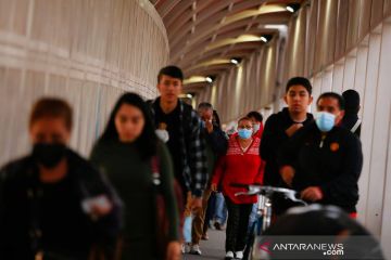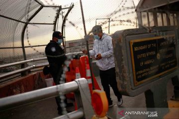 Sejumlah pelaku perjalanan melintas masuk ke wilayah Amerika Serikat di jembatan perbatasan internasional Paso del Norte, Ciudad Juarez, Meksiko, Senin (8/11/2021). Amerika Serikat mengizinkan masuk warga negara asing dari 26 negara yang sudah divaksinasi COVID-19 secara penuh via jalur udara maupun darat mulai 8 November 2021. ANTARA FOTO/REUTERS/Jose Luis Gonzalez/wsj.