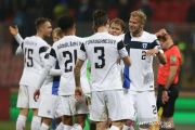 Pesepak bola nasional Finlandia Paulus Arajuuri merayakan kemenangan bersama rekan setimnya usai bertanding melawan tim nasional Bosnia Herzegovina pada babak kualifikasi Piala Dunia Zona Eropa Grup D di Stadion Bilino Polje, Zenica, Bosnia Herzegovina, Sabtu (13/11/2021). Finlandia tundukkan tuan rumah Bosnia Herzegovina 3-1. ANTARA FOTO/REUTERS/Dado Ruvic/wsj.