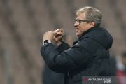 Pelatih tim nasional Finlandia Markku Kanerva merayakan kemenangan timnya usai bertanding melawan tim nasional Bosnia Herzegovina pada babak kualifikasi Piala Dunia Zona Eropa Grup D di Stadion Bilino Polje, Zenica, Bosnia Herzegovina, Sabtu (13/11/2021). Finlandia tundukkan tuan rumah Bosnia Herzegovina 3-1. ANTARA FOTO/REUTERS/Dado Ruvic/wsj.