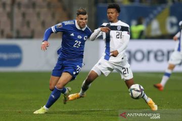 Pesepak bola nasional Finlandia Niko Hamalainen (kanan) berusaha menghadang pesepak bola nasional Bosnia Herzegovina Ermedin Demirovic pada babak kualifikasi Piala Dunia Zona Eropa Grup D di Stadion Bilino Polje, Zenica, Bosnia Herzegovina, Sabtu (13/11/2021). Finlandia tundukkan tuan rumah Bosnia Herzegovina 3-1. ANTARA FOTO/REUTERS/Dado Ruvic/wsj.