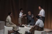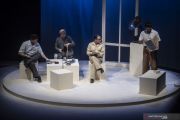 Sejumlah aktor mementaskan salah satu adegan pada pertunjukan teater "Mereka Yang Menunggu Di Banda Naira" di Gedung Kesenian Jakarta, Jakarta, Rabu (24/11/2021). Pementasan yang berkisah tentang pertemuan empat tokoh pergerakan Indonesia yaitu Sutan Sjahrir, Mohammad Hatta, dr.Tjipto Mangoenkoesoemo, dan Iwa Koesoema Soemanteri di Banda Naira tersebut akan ditayangkan secara virtual selama 6 bulan di kanal YouTube IndonesiaKaya. ANTARA FOTO/Muhammad Adimaja/hp.
