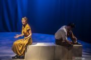 Aktor Reza Rahadian sebagai Sutan Sjahrir beradu peran dengan Aktris Julia Estelle sebagai Maria Duchtaeau pada pementasan teater "Mereka Yang Menunggu Di Banda Naira" di Gedung Kesenian Jakarta, Jakarta, Rabu (24/11/2021). Pementasan yang berkisah tentang pertemuan empat tokoh pergerakan Indonesia yaitu Sutan Sjahrir, Mohammad Hatta, dr.Tjipto Mangoenkoesoemo, dan Iwa Koesoema Soemanteri di Banda Naira tersebut akan ditayangkan secara virtual selama 6 bulan di kanal YouTube IndonesiaKaya. ANTARA FOTO/Muhammad Adimaja/hp.