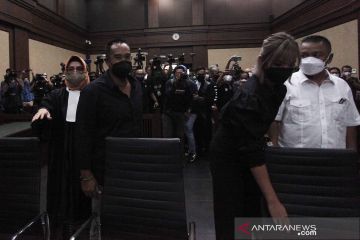 Dua orang terdakwa kasus penyalahgunaan narkoba Ardie Bakrie (kanan) dan Nia Ramadhani (tengah) bersiap menjalani sidang dakwaan di Pengadilan Negeri Jakarta Pusat, Jakarta, Kamis (2/12/2021). Terdakwa Ardi Bakrie dan Nia Ramadhani menjalani sidang perdana setelah menjalani empat bulan rehabilitasi di kawasan Bogor, Jawa Barat karena tersandung kasus narkoba. ANTARA FOTO/Reno Esnir/wsj.