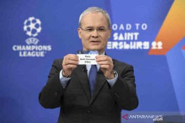 Wakil Sekretaris Jenderal UEFA Giorgio Marchetti menarik kartu Paris St Germain saat pengundian babak 16 Besar Liga Champions 2021/22 di markas UEFA, Nyon, Swiss, Senin (13/12/2021). Hasil pengundian awal dimana mempertemukan Manchester United dengan PSG dibatalkan dan dilakukan pengundian ulang menyusul terjadinya kesalahan teknis. ANTARA FOTO/UEFA/Handout via REUTERS/rwa.