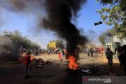 Pengunjuk rasa membakar ban saat aksi menentang aturan militer menyusul kudeta bulan lalu di Khartoum, Sudan, Kamis (30/12/2021). ANTARA FOTO/REUTERS/Mohamed Nureldin Abdallah/WSJ.