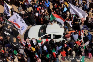 Pengunjuk rasa berjalan saat aksi menentang aturan militer menyusul kudeta bulan lalu di Khartoum, Sudan, Kamis (30/12/2021). ANTARA FOTO/REUTERS/Mohamed Nureldin Abdallah/WSJ.
