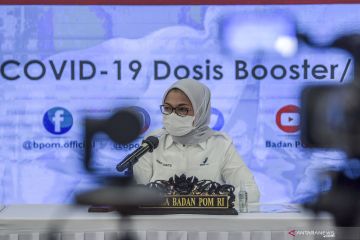 Kepala Badan Pengawas Obat dan Makanan (BPOM) Penny Lukito memberikan keterangan pers terkait vaksin COVID-19 booster atau vaksin lanjutan di Kantor BPOM, Jakarta, Senin (10/1/2022). BPOM resmi menerbitkan izin penggunaan darurat atau Emergency Use Authorization (EUA) untuk lima vaksin COVID-19 yang akan digunakan sebagai vaksin dosis ketiga atau booster di Indonesia yang program vaksinasinya akan dimulai pada 12 Januari 2022. ANTARA FOTO/Galih Pradipta/hp.