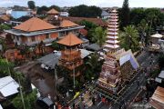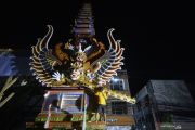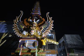 Warga menyelesaikan pemasangan bade atau menara tempat jenazah yang akan diarak menjelang upacara ngaben Raja Pemecutan XI Anak Agung Ngurah Manik Parasara di Denpasar, Bali, Kamis (20/1/2022). Puncak upacara ngaben atau pelebon Anak Agung Ngurah Manik Parasara akan dilakukan pada Jumat (21/1) besok. ANTARA FOTO/Fikri Yusuf/foc.