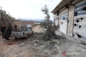 Sebuah bangunan rusak usai digelarnya misi kontra-terorisme yang dipimpin Amerika Serikat di Atmeh, Suriah, Kamis (3/2/2022). Pentagon mengklaim Pasukan khusus Amerika Serikat dari US Special Operation Force (SOF) berhasil melakukan misi kontra-terorisme di lokasi tersebut yang menewaskan Pemimpin ISIS Abu Ibrahim al-Hashemi al-Qurayshi. ANTARA FOTO/Mohamed Al-Daher/Handout via REUTERS/wsj.