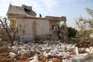 Sebuah bangunan hancur usai digelarnya misi kontra-terorisme yang dipimpin Amerika Serikat di Atmeh, Suriah, Kamis (3/2/2022). Pentagon mengklaim Pasukan khusus Amerika Serikat dari US Special Operation Force (SOF) berhasil melakukan misi kontra-terorisme di lokasi tersebut yang menewaskan Pemimpin ISIS Abu Ibrahim al-Hashemi al-Qurayshi. ANTARA FOTO/Mohamed Al-Daher/Handout via REUTERS/wsj.