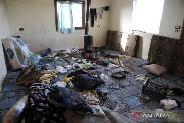 Suasana di dalam bangunan yang berantakan usai digelarnya misi kontra-terorisme yang dipimpin Amerika Serikat di Atmeh, Suriah, Kamis (3/2/2022). Pentagon mengklaim Pasukan khusus Amerika Serikat dari US Special Operation Force (SOF) berhasil melakukan misi kontra-terorisme di lokasi tersebut yang menewaskan Pemimpin ISIS Abu Ibrahim al-Hashemi al-Qurayshi. ANTARA FOTO/Mohamed Al-Daher/Handout via REUTERS/wsj.