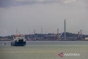 Kapal Motor Penumpang (KMP) Ulin melintas di Teluk Balikpapan, Balikpapan, Kalimantan Timur, Sabtu (5/2/2022). Lokasi Ibu Kota Negara (IKN) Nusantara yang berada di Kabupaten Penajam Paser Utara Provinsi Kalimantan Timur memiliki beberapa pilihan transportasi, salah satunya kapal ferry yang melayani penyeberangan dari Pelabuhan Kariangau Balikpapan-Pelabuhan Ferry Penajam lalu dilanjutkan jalur darat. ANTARA FOTO/Bayu Pratama S/rwa.