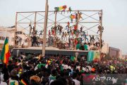 Warga menyambut Tim Sepak Bola Nasional Senegal yang menjuarai Piala Afrika setibanya di Dakar, Senegal, Senin (7/2/2022). Senegal menjuarai Piala Afrika 2021 setelah menundukkan Mesir 4-2 melalui adu pinalti. ANTARA FOTO/REUTERS/Zohra Bensemra/rwa.