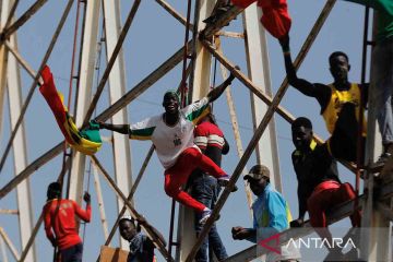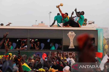 Tim Sepak Bola Nasional Senegal berpawai usai menjuarai Piala Afrika di Dakar, Senegal, Senin (7/2/2022). Senegal menjuarai Piala Afrika 2021 setelah menundukkan Mesir 4-2 melalui adu pinalti. ANTARA FOTO/REUTERS/Zohra Bensemra/rwa.