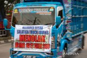 Sebuah truk yang tergabung dalam Asosiasi Pengemudi Independen (API) Jateng melaju di Jalan Siliwangi Semarang saat mengikuti aksi pawai demo tolak aturan ODOL menuju Kantor Dinas Perhubungan Jawa Tengah di Semarang, Jawa Tengah, Selasa (22/2/2022). Dalam aksi tersebut mereka menolak kebijakan pemerintah terkait pembatasan dan pelarangan truk over dimension loading (ODOL) atau kelebihan dimensi dan muatan yang dinilai akan merugikan mereka, serta menuntut adanya revisi UU No 22 Tahun 2009 tentang lalu lintas dan angkutan. ANTARA FOTO/Aji Styawan/aww.
