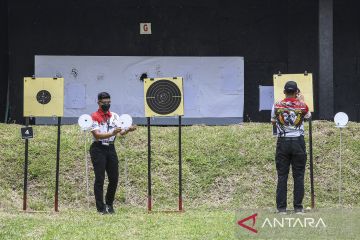 Sejumlah petembak membidik sasaran ketika mengikuti Lomba Tembak Piala Komandan Pasukan Pengamanan Presiden (Danpaspampres) 2022 di Lapangan Tembak Senayan, Jakarta, Kamis (10/3/2022). Kejuaraan tembak yang merupakan rangkaian Hari Bakti ke-76 Paspampres tersebut diikuti ratusan peserta dari TNI/Polri dan sipil bertujuan untuk pembibitan atlet serta memberi ruang bagi prajurit yang telah berkiprah sebagai atlet tembak baik tingkat nasional maupun internasional. ANTARA FOTO/M Risyal Hidayat/aww.