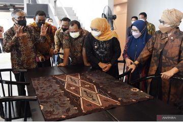 Ketua Dewan Komisioner Otoritas Jasa Keuangan (OJK) Wimboh Santoso (kedua kanan) berbincang dengan Gubernur Jawa Timur Khofifah Indar Parawansa (kanan) dan anggota DPR Komisi XI Indah Kurnia (ketiga kiri) serta sejumlah pejabat OJK ketika meninjau Kantor OJK Regional IV Jawa Timur usai peresmian kantor tersebut di Surabaya, Jawa Timur, Selasa (15/3/2022). Dengan hadirnya Kantor OJK tersebut diharapkan dapat memperkuat peran OJK di sektor jasa keuangan yang memberikan perlindungan terhadap konsumen serta mendukung pengembangan perekonomian di daerah itu. ANTARA FOTO/Zabur Karuru/hp.