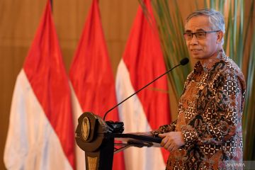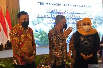 Ketua Dewan Komisioner Otoritas Jasa Keuangan (OJK) Wimboh Santoso memberikan sambutannya saat peresmian Kantor OJK Regional IV Jawa Timur di Surabaya, Jawa Timur, Selasa (15/3/2022). Dengan hadirnya Kantor OJK tersebut diharapkan dapat memperkuat peran OJK di sektor jasa keuangan yang memberikan perlindungan terhadap konsumen serta mendukung pengembangan perekonomian di daerah itu. ANTARA FOTO/Zabur Karuru/hp.