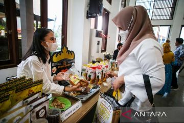 Pengunjung mengunjungi salah satu stan pada acara "kick off" Gerakan Nasional Bangga Buatan Indonesia (Gernas BBI) Lagawi Fest Tahun 2022 di Mahan Agung, Bandar Lampung, Lampung, Kamis (17/3/2022). Gernas BBI tersebut membidik peningkatan penjualan secara online bagi 30 industri kecil dan menengah terpilih selama tiga bulan. ANTARA FOTO/Rivan Awal Lingga/pras.