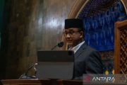 Gubernur DKI Jakarta Anies Baswedan mengisi ceramah shalat tarawih di Masjid Kampus UGM, Sleman, DI Yogyakarta, Kamis (7/4/2022). Dalam ceramahnya Anies Baswedan menyampaikan tentang Pengelolaan Kota Berbasis Environmental Sustainability dalam Perspektif Islam. ANTARA FOTO/Hendra Nurdiyansyah/aww.