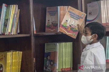 Seorang murid mengambil buku pelajaran untuk dibaca di SDN 01 Malasari, Nanggung, Bogor, Jawa Barat, Sabtu (9/4/2022). Berdasarkan data dari UNESCO, minat baca siswa di Indonesia hanya 0,001 persen, di mana hal tersebut disebabkan tidak ada motivasi membaca serta kurangnya sarana prasarana untuk membaca. ANTARA FOTO/Muhammad Adimaja/wsj.