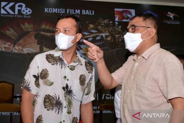 Sineas Garin Nugroho (kanan) berbincang dengan aktor Nicholas Saputra (kiri) disela workshop industri perfilman di rangkaian kegiatan Bali Digital Fest 2022 di Sanur, Denpasar, Bali, Minggu (10/4/2022). Kegiatan itu diselenggarakan untuk mengembangkan potensi industri kreatif perfilman di Bali. ANTARA FOTO/Fikri Yusuf/wsj.