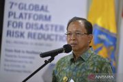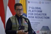 Deputi Bidang Sistem dan Strategi Badan Nasional Penanggulangan Bencana (BNPB) Raditya Jati memberikan keterangan pers persiapan penyelenggaraan Global Platform for Disaster Risk Reduction (GPDRR) di Denpasar, Bali, Jumat (22/4/2022). Panitia Nasional GPDRR terus melakukan berbagai persiapan menjelang pelaksanaan forum internasional yang diselenggarakan untuk meninjau kemajuan, berbagi pengetahuan dan mendiskusikan perkembangan dalam penanggulangan risiko bencana yang akan diselenggarakan di Nusa Dua Bali pada 23-29 Mei 2022 tersebut. ANTARA FOTO/Fikri Yusuf/wsj.