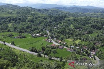 Foto udara Jalan Pantai Selatan (Pansela) di Kecamatan Ciandum, Kabupaten Cianjur, Jawa Barat, Rabu (27/4/2022). Pada H-5 Lebaran 2022, arus lalu lintas yang melintas di Jalur Pansela Jawa Barat terpantau sepi pemudik. ANTARA FOTO/Adeng Bustomi/aww.