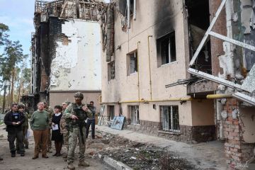 Sekjen PBB Antonio Guterres (kedua kanan) mengunjungi kota Irpin, saat serangan Rusia ke Ukraina masih berlanjut, di luar Kyiv, Ukraina, Kamis (28/4/2022), ANTARA FOTO/Reuters- Gleb Garanich/hp.