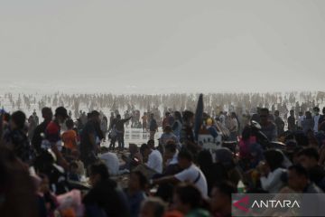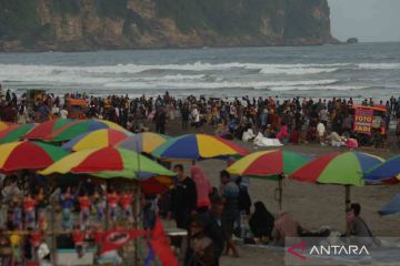 Wisatawan memadati Pantai Parangtritis, Bantul, D.I Yogyakarta, Rabu (4/5/2022). Dinas Pariwisata Bantul mencatat pada hari kedua Lebaran (3/5) sebanyak 24.170 pengunjung berwisata ke Pantai Parangtritis. ANTARA FOTO/Andreas Fitri Atmoko/wsj.