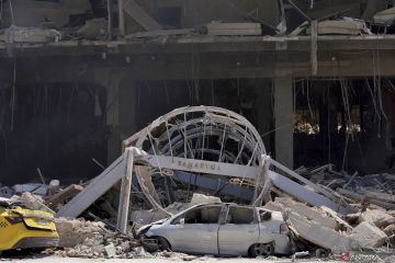 Sebuah mobil rusak tertimpa puing-puing bangunan usai sebuah ledakan terjadi di Hotel Saratoga di Havana, Kuba, Jumat (6/5/2022). Setidaknya 22 orang tewas dalam insiden ledakan di Hotel Saratoga tersebut yang diduga disebabkan oleh kebocoran gas. ANTARA FOTO/REUTERS/Alexandre Meneghini/wsj.