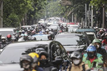 Sejumlah kendaraan memadati jalan di kawasan Lenteng Agung, Jakarta, Senin (9/5/2022). Masyarakat hari ini (9/5/2022) mulai kembali beraktivitas usai libur Lebaran 2022. ANTARA FOTO/Asprilla Dwi Adha/foc.