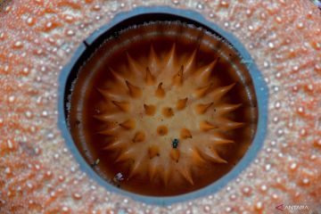 Seekor lalat berada di putik bunga Rafflesia arnoldii yang mekar di halaman rumah Joni Hartono di Batang Palupuh, Kecamatan Palupuh, Kabupaten Agam, Sumatera Barat, Selasa (10/5/2022). Pemandu wisata Joni Hartono, mulai membudidayakan bunga Rafflesia arnoldii di halaman rumahnya sejak tahun 2000 dan mekar pertama kali pada tahun 2009, hingga kini ia mencatat sudah belasan kali bunga langka tersebut mekar. ANTARA FOTO/Iggoy el Fitra/foc.