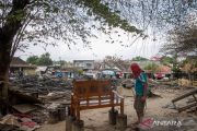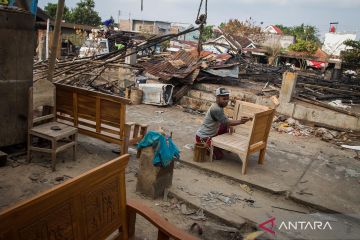 Pekerja memproduksi kursi di bekas lokasi kebakaran Pasar Mebel, Solo, Jawa Tengah, Rabu (11/5/2022). Pemerintah Kota Solo akan membangun sentra IKM di lokasi bekas kebakaran tersebut dan memberikan waktu hingga tanggal 20 Mei 2022 kepada pedagang untuk pindah ke pasar darurat sebelum direlokasi ke pasar mebel yang baru. ANTARA FOTO/Mohammad Ayudha/pras.